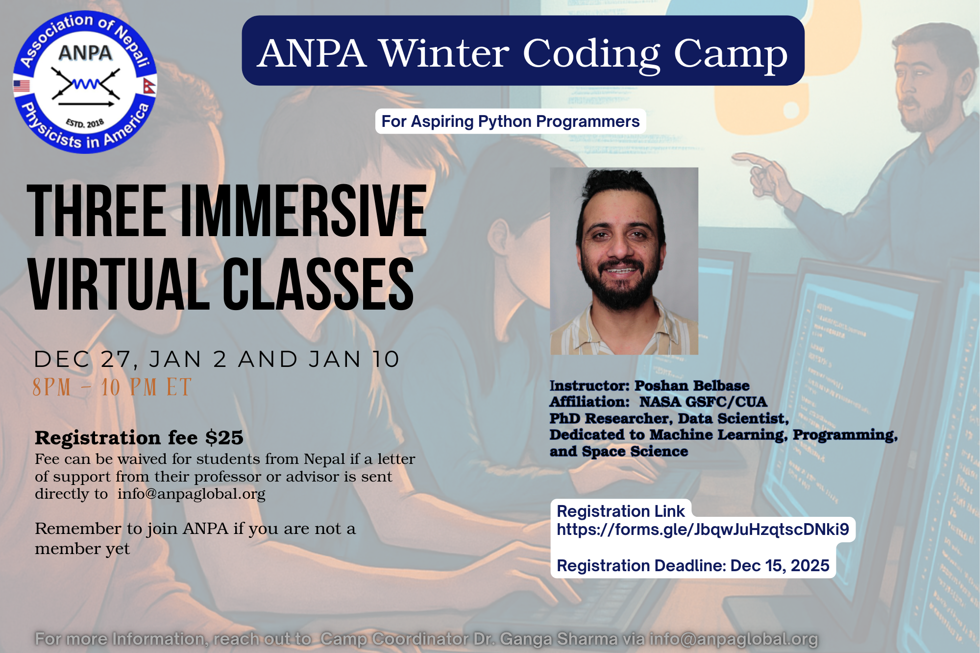 For month of October, ANPA PER has talk on “From Training to Transformation: Exploring the Pedagogical Growth, Identity Development, and Cultural Navigation of STEM Graduate Teaching Assistants” by Dr. Nishchal Thapa Magar, Adjunct Professor, George Mason University, VA.