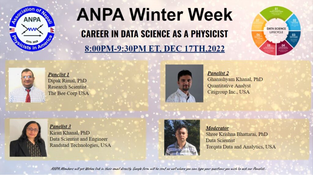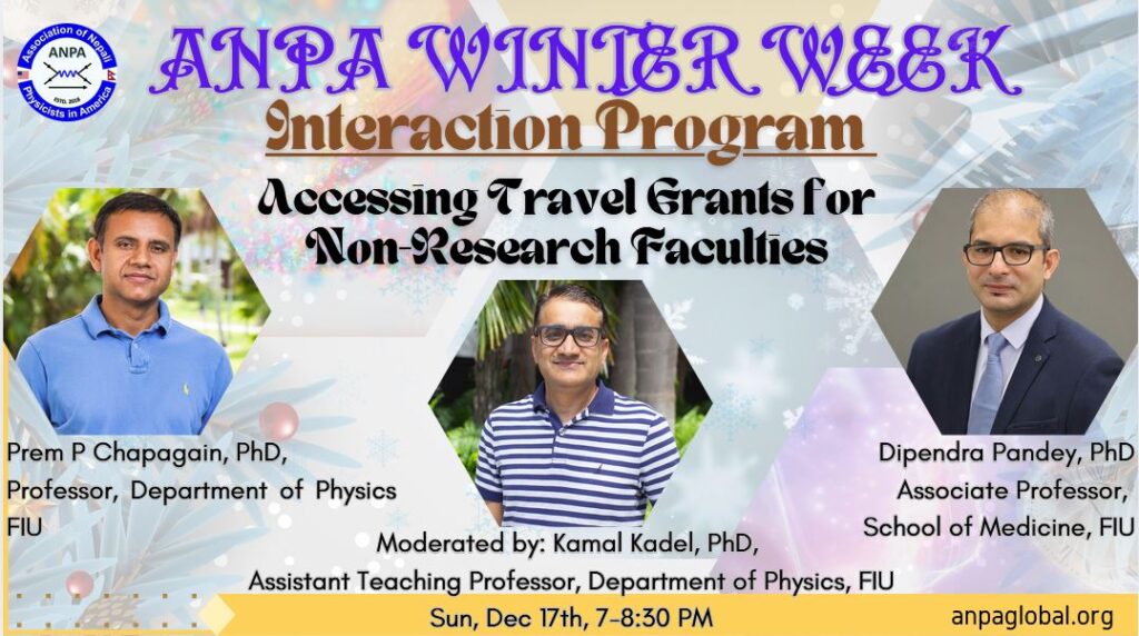 - Dr. Prem Chapagain, Dr. Madhav Neupane, Dr. Tara Dhakal, Dr. Mim Nakarmi, Dr. Doug Petkie, Dr. Parashu Kharel (Florida International University, University of Central Florida, University of Alabama, Suny University, Worcester Polytechnic Institute, University of South Dakota): Experts in different areas of physics, specializing in research grants, teaching, and services with experience in faculty hiring and leadership abilities.