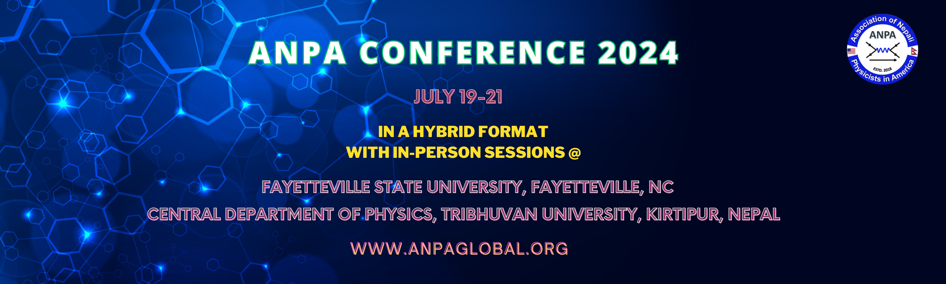 On behalf of the Organizing Committee, I extend a warm welcome to you for the 7th Association of Nepali Physicists in America (ANPA) Conference, scheduled to take place from July 19th to 21st, 2024. This conference will be conducted in a hybrid format, featuring in-person sessions at Fayetteville State University in Fayetteville, North Carolina, and Central Department of Physics, Tribhuvan University (T.U.), Kirtipur, Kathmandu, Nepal and online session via Webex.